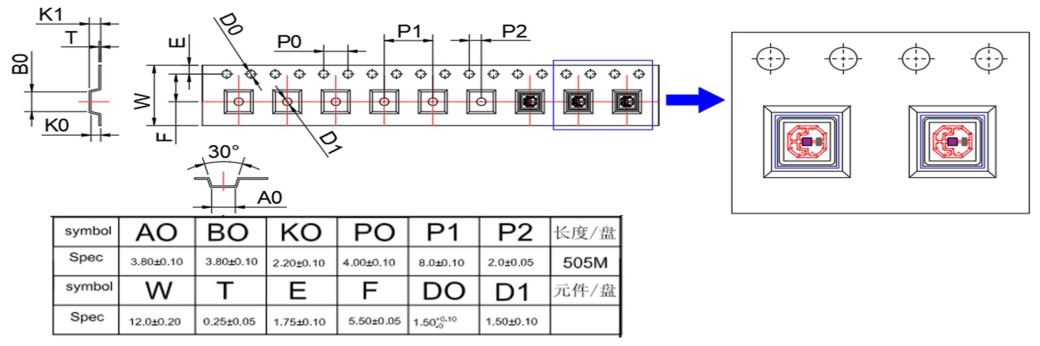 - All dimensions meet eia-481-b requirements;