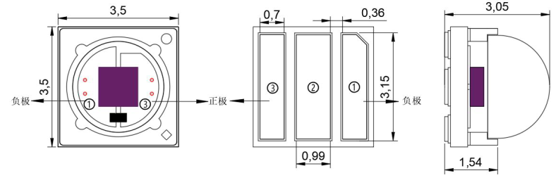 - Package: 3535 package, external dimension: 3.5 × 3.5 × 3.05 (L × w × h) [unit: mm]