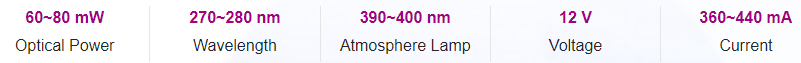Using self-developed deep UV uvc-led, reliable performance, high optical power and low power consumption;