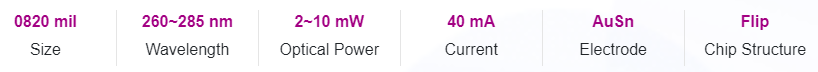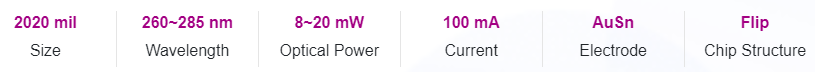 • A single device contains two different types of chips, namely UVC and Zener diodes. Among them, Zener diodes play an ESD protection role on UVC LEDs;